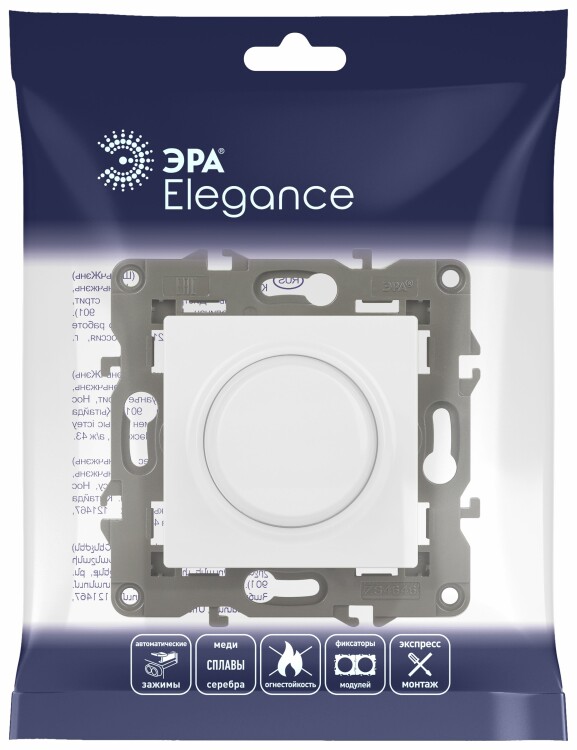 14-4101-01 ЭРА Светорегулятор поворотно-нажимной, 400ВА 230В, IP20, Эра Elegance, белый (6/60/1800) (кр. 1шт)