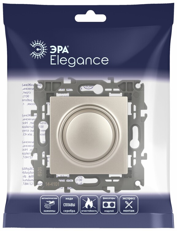 14-4101-04 ЭРА Светорегулятор поворотно-нажимной, 400ВА 230В, IP20, Эра Elegance, шампань (6/60/960) (кр. 1шт)