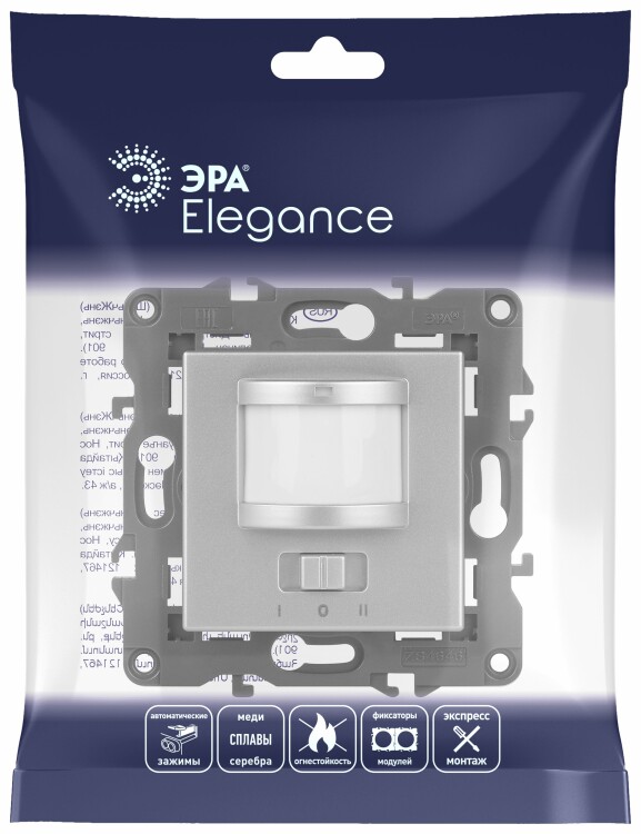 14-4103-03 ЭРА Датчик движения 2-проводной, 180-240В, 200Вт, IP20, Эра Elegance, алюминий (6/60/1920 (кр. 1шт)