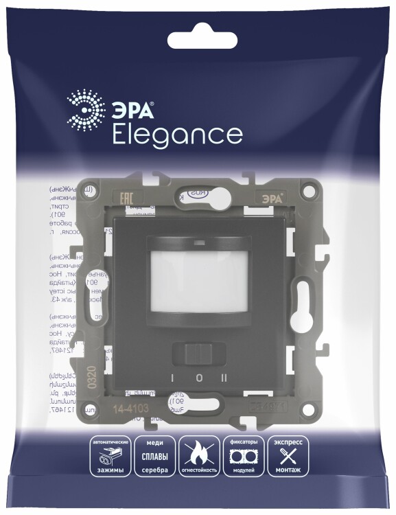 14-4103-05 ЭРА Датчик движения 2-проводной, 180-240В, 200Вт, IP20, Эра Elegance, антрацит (6/60/1920 (кр. 1шт)