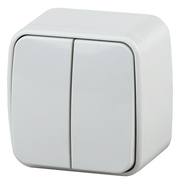 Выключатель2-клавишный серии Intro Polo открытой установки цвет белый 3-104-01. Номинальные характеристики 10А 250В . Выключатель выполнен из качественного термопласта, стали и латуни, оснащён винтовыми зажимами.