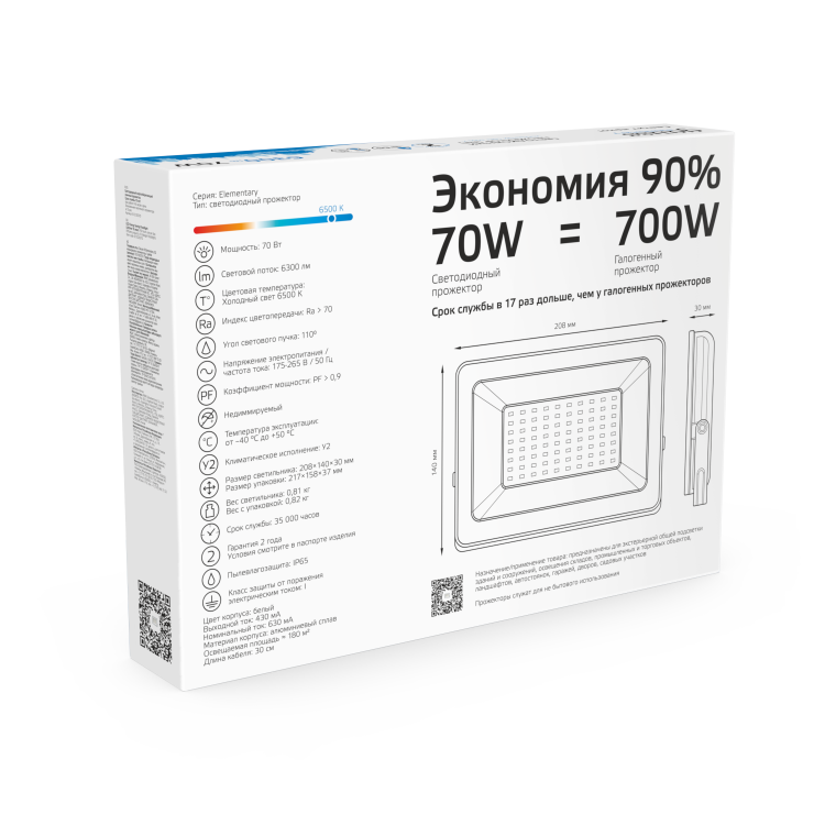 Универсальный и незаменимый прожектор Gauss Elementary с белым корпусом созданный для экстерьерной общей подсветки зданий и сооружений, освещения складов, промышленных и торговых объектов, а также ландшафтных объектов, теперь имеет улучшенную модификацию корпуса.