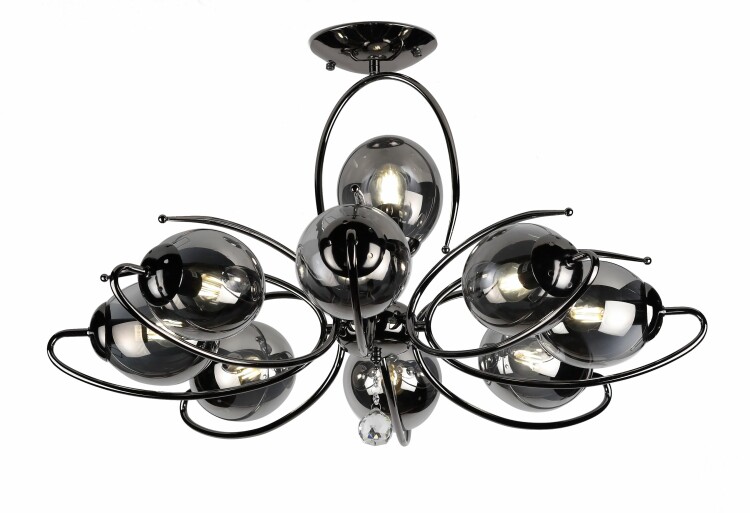 Европейские люстры в гостиную Rivoli Estatico изготовлены из прочного хромированного металла и дымчатого стекла с глянцевым покрытием. Данные 9-рожковые люстры осветят площадь 26 м² и подойдут в качестве люстры в просторную спальню, в квартиру-студию или в загородный дом.