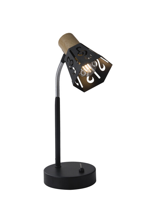 Rivoli Notabile (арт. 7005-501) светильник настольный от итальянских дизайнеров. Красивая лампа на стол оформлена в эффектном сочетании черного матового металла и светлого дерева. Металлический плафон имеет элегантное узорчатое перфорирование. Настольный светильник применяется с лампочкой Е14 мощностью 40 Вт.