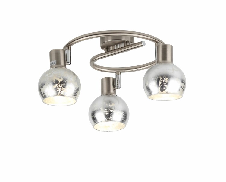 Споты потолочные Rivoli Craquelure под 3 лампы Е14 40 Вт. Плафоны этой люстры на потолок имеют поворотную конструкцию для выбора направления света. Стекло плафонов спота накладного Craquelure красиво оформлено в технике кракле. Серебристый цвет плафонов отлично сочетается с актуальным покрытием арматуры никель-сатин. Эта люстра-спот выглядит по-настоящему стильно и модно.