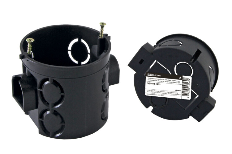 Установочная коробка СП D68х62мм, углубленная, саморезы, стык. уз, черная, IP20, инд. штрихкод TDM (кр.1шт)