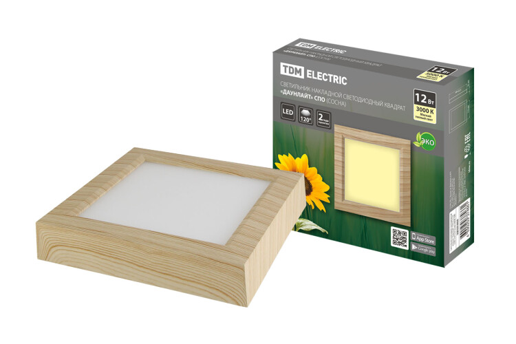 Светильник накладной светодиодный квадрат "Даунлайт" СПО (сосна) 12 Вт 170*170*32 мм 3000К TDM (кр.1шт)