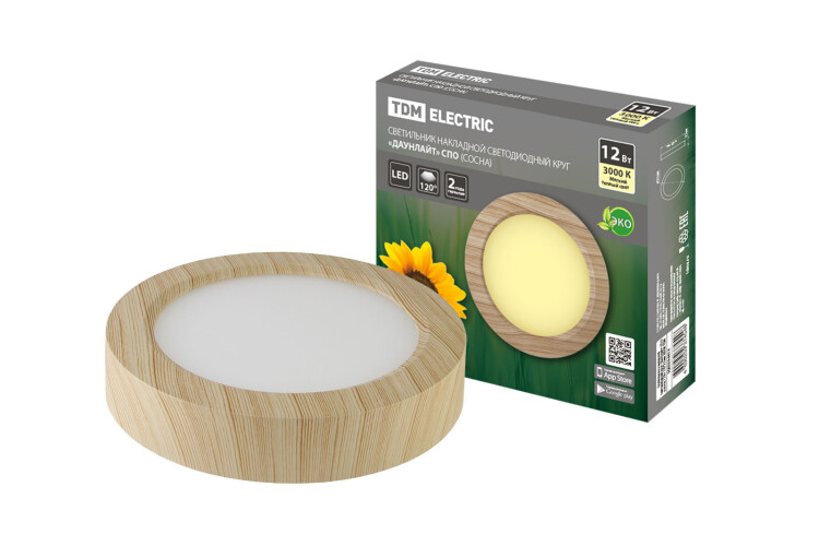 Светильник накладной светодиодный круг "Даунлайт" СПО (сосна) 12 Вт 170*32 мм 3000К TDM (кр.1шт)