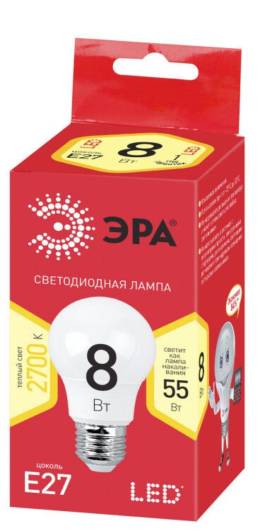 Светодиодная лампа ЭРА серии R мощностью 8 Вт Вт с цветовой температурой 2700 K в цоколе E27 обладает теплым свечением, комфортным для глаз (температура наиболее приближена к утреннему солнцу и полуденному солнцу). Корпус лампы выполнен в форме "груши", которая является наиболее привычной и популярной на сегодняшний день. Мягкое и равномерное распределение светового спектра не содержит вредных UV-излучений - утомляемость глаз значительно снижается, а цвета приобретают естественный оттенок и глубину.