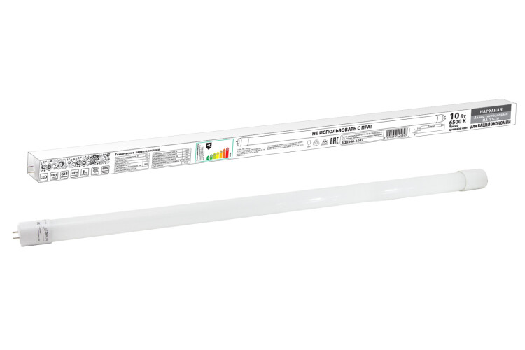 Лампа светодиодная НЛ-Т8-10 Вт-230 В-6500 К–G13, 600 мм, матовая, стекло, непов. Народная (кр.30шт) !Акция