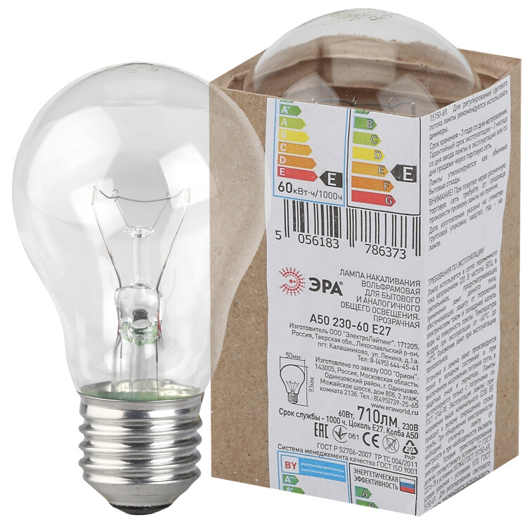 Лампа накаливания вольфрамовая для бытового и аналогичного общего освещения. Предназначена для использования в светильниках внутреннего и наружного освещения в сетях переменного тока напряжением 220 В, частотой 50 Гц. Прозрачная колба лампы создана специально для эффектов абсолютно чистого, искрящегося света.