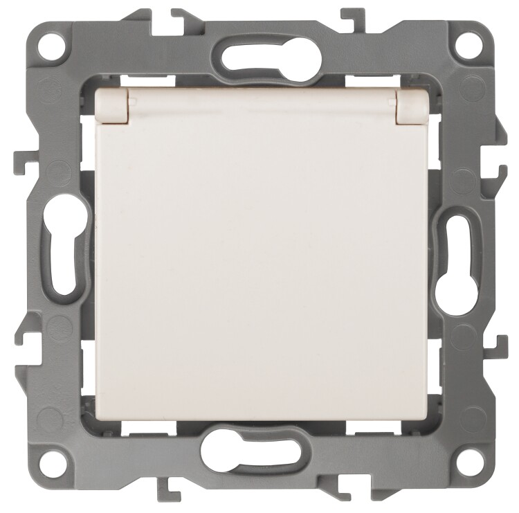Розетка 2P+E Schuko со шторками с крышкой, 16А-250В, б.л., Эра12, слоновая кость