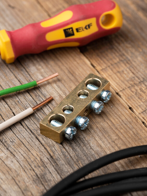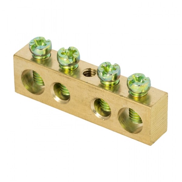 Шина PEN "ноль-земля" (8х12мм) 4 отверстия латунь крепеж по центру EKF PROxima (кр. 560 шт)