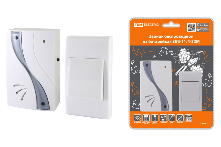 Применение:Используются в качестве дверных звонков или устройств внутреннего вызова. Преимущества:Бюджетное предложение на электротехническом рынке.Дальность работы беспроводных звонков 100-300 метров (на открытом пространстве).В ряде моделей имеется возможность разместить на кнопке номер квартиры и/или фамилию хозяина.В ряде моделей пользователь имеет возможность изменения кода звонка при порче/утере старой кнопки или для подключения дополнительной кнопки.В ассортименте имеются отдельно кнопки для проводных и беспроводных звонков, что позволит произвести замену при порче старой кнопки.Ряд моделей имеет кнопки со степенью защиты IP44, которые можно устанавливать на улице.Имеются исполнения с 2-мя кнопками (для разных выходов из дома) и с 2-мя звонками (для разных этажей или зданий: дом, гараж).Звонки упакованы в яркую блистерную упаковку, оформленную в корпоративных цветах TDM ELECTRIC, на каждом блистере есть информационные пиктограммы с характеристиками звонков.0: Применение:Используются в качестве дверных звонков или устройств внутреннего вызова. Преимущества:Бюджетное предложение на электротехническом рынке.Дальность работы беспроводных звонков 100-300 метров (на открытом пространстве).В ряде моделей имеется возможность разместить на кнопке номер квартиры и/или фамилию хозяина.В ряде моделей пользователь имеет возможность изменения кода звонка при порче/утере старой кнопки или для подключения дополнительной кнопки.В ассортименте имеются отдельно кнопки для проводных и беспроводных звонков, что позволит произвести замену при порче старой кнопки.Ряд моделей имеет кнопки со степенью защиты IP44, которые можно устанавливать на улице.Имеются исполнения с 2-мя кнопками (для разных выходов из дома) и с 2-мя звонками (для разных этажей или зданий: дом, гараж).Звонки упакованы в яркую блистерную упаковку, оформленную в корпоративных цветах TDM ELECTRIC, на каждом блистере есть информационные пиктограммы с характеристиками звонков.