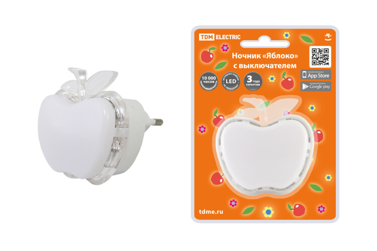 Ночник "Яблоко" с выключателем, 0,3 Вт, 220 В TDM (кр.1шт)