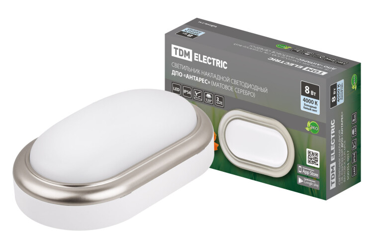 Светильник накладной LED ДПО "Антарес" 8Вт 4000К овал 168*100*58 мм мат.серебро IP54 TDM (кр.1шт)