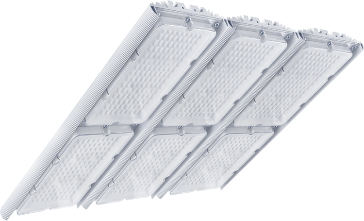 Универсальный светильник модульного исполнения для внутреннего и наружного освещения. Рефлекторная решетка формирует световой поток с углом расходимости 90 °. В зависимости от мощности стандартные светильники могут состоять из одного, двух или трех модулей. По индивидуальному заказу количество модулей может быть увеличено. Являются аналогами светильников с лампами ДРЛ 125-1000 и ДНаТ 70-600.