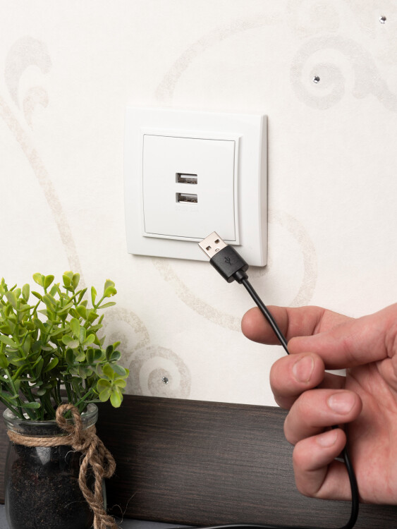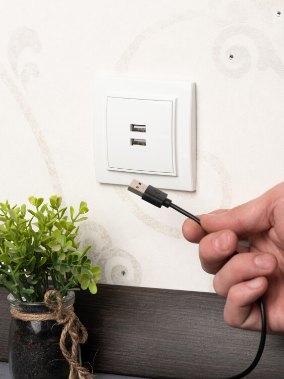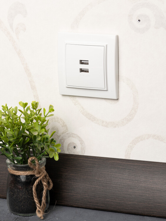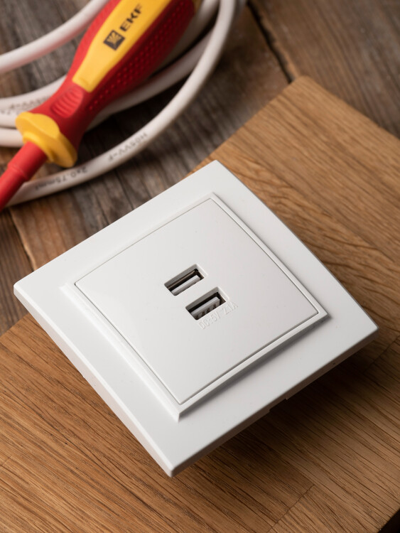 Розетка с 2 USB EKF серии Минск станет отличным решением для квартиры и загородного дома для по дключения устройств. USB-разъемы позволяют подлючить мобильные устройства напрямую, без адаптера.