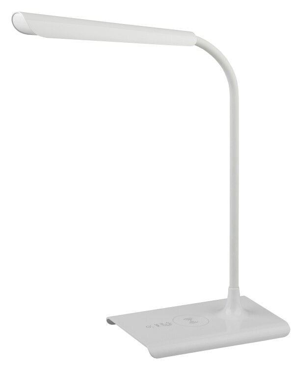Настольный светильник ЭРА NLED-474-10W-W позволяет не только с комфортом читать или работать за столом, но и заряжать мобильные устройства от встроенного порта USB или беспроводным способом. Даже если такая функция не встроена в сам гаджет, в комплекте поставки 2 модуля, подключаемых к телефону для обеспечения функции беспроводной зарядки: с разъемом для iPhone (Lightning) и Android (микро-USB). Встроенный USB порт при желании позволяет заряжать, например, планшет или второй телефон одновременно с беспроводной зарядкой, это очень удобно. Управление светильником осуществляется при помощи сенсорных кнопок на основании, есть возможность плавной регулировки яркости. Корпус светильника глянцевый, а гибкая стойка покрыта приятным на ощупь материалом софт-тач.