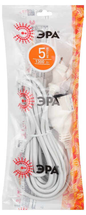 Удлинитель электрический Эра UX(6)-1-5m без зазе мления, 1 розетка, провод ПВС 2x0,75мм2, длиной 5 м. Рассчитан на максимальную мощность 6А/1300Вт. Удлинитель Эра станет Вашим надежным помощником, если Ваши любимые электроприборы находятся далеко от розеток. Модель удлинителя на 6А позволяет подключить бытовые приборы общей нагрузкой до 1300Вт. Дизайн удлинителя разработан в России командой Эра Style.