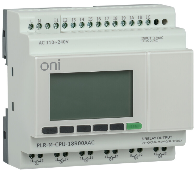 Модуль ЦПУ микро ПЛК ONI с возможностью расширения количества каналов ввода-вывода и коммуникаций с помощью модулей расширения ONI PLR-S. С интегрированным полнофункциональным экраном, 12 дискретными входами, 6 релейными выходами. Архивация данных процесса при использовании стандартной SD карты. Интегрирован 1 интерфейс Ethernet с поддержкой Modbus TCP/RTU/ASCII и MQTT протоколов. Предназначен для управления автоматизированным оборудованием. Напряжение питания 220В AC.