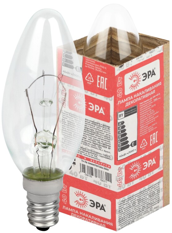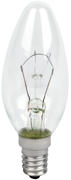 Лампа накаливания вольфрамовая для бытового и аналогичного общего освещения. Лампа с колбой в виде свечи используется для декоративного оформления светильника, придания ему законченного и совершенного вида. Она красиво смотрится, создавая эффект настоящей зажженной свечи, что привносит в интерьер комнаты более уютный, успокаивающий и "теплый" вид. Прозрачная колба лампы создана специально для эффектов абсолютно чистого, искрящегося света.