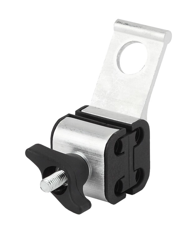 Используется для крепления 2 или 4 проводов и обеспечивает подвеску на промежуточных опорах с углом поворота до 30. Снабжен гайкой-барашком для удобного монтажа.