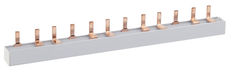 Соединительная шина для автоматических выключателей с шириной модуля 18 мм, применяется для создания безопасного и долговечного соединения в различных электроустановках