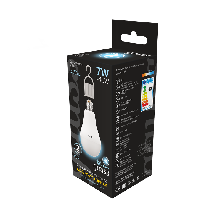 Мощность 7W обеспечивает достаточно яркое свечение, а эффективный Li-Ion аккумулятор позволяет использовать эту лампу даже при отключении электричества. Компактный корпус и стандартный цоколь E27 делают установку лампы простой и безопасной. Благодаря цветовой температуре 4100К, лампа создает уютную и комфортную атмосферу для работы или отдыха.