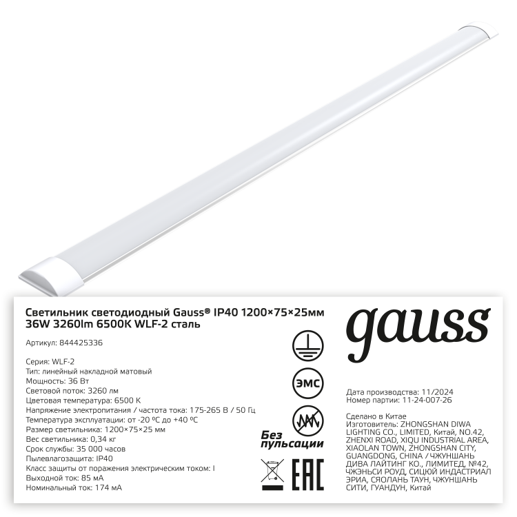 Светильник светодиодный матовый Gauss WLF-2 36w с уровнем пылезащиты IP 40 это бюджетный вариант бытовых светильников с качественными светодиодами Sаnan на алюминиевом радиаторе. Корпус изготовлен из стали покрытой антикоррозийной порошковой краской белого цвета, рассеиватель - опаловый пластик. У светильника высокая светоотдача: яркость светового потока соста вляет 3260лм при световой температуре 6500К (холодный белый свет). Сфера использования: общее освещение административных, коммерческих, жилых зданий.