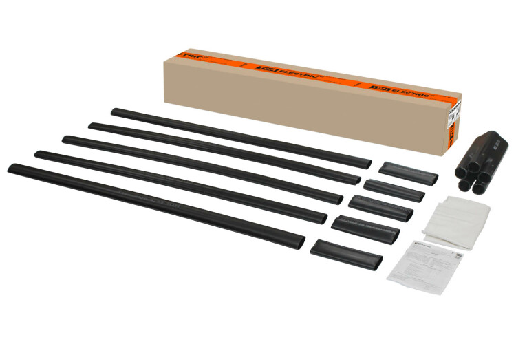 Применение:Для кабелей: (А)ВВГ, NYM, NYY, (А)ПвВГ и их аналогов Материалы:Полиолефин модифицированный потоком быстрых электроновПреимущества:Имеют высокие изоляционные свойстваУстойчивы к ультрафиолетовому излучению и воздействию климатических факторовПрименяются с кабелями, как с медными, так и с алюминиевыми жиламиИспользуются при монтаже муфт как внутренней, так и наружной установкиТермоплавкий клей, нанесенный на внутреннюю поверхность перчатки и трубок, обеспечивает полную герметичность муфты после монтажаМогут применяться с наконечниками различных конструкций и любого материалаСовместимы с кабелями с нулевой жилой пониженного сечения Назначение:Для оконцевания 4 или 5-ти жильных кабелей с пластмассовой изоляцией (ПВХ, СПЭ) на напряжение до 1 кВ Конструкция:Термоусаживаемая перчаткаТермоусаживаемые трубки по количеству жил кабеляТермоусаживаемые трубки на наконечники по количеству жил кабеляБез наконечников в комплекте