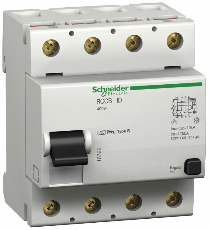 Дифференциалный выключатель нагрева ID 4П 40A 500мА B-тип. диапазон: Acti 9 - положение нейтрали: слева - тип сети: переменный ток. Преимущества: Качество без ограничений Устройства защитного отключения ID-RCCB являются естественным дополнением к автоматическим выключателям C60 и C120.. Устройства ID-RCCB типа и quot;si и quot; полностью защищены от воздействия помех, обеспечивая, таким образом, непревзойденную надежность.... применения: Обеспечение в любых зданиях промышленных предприятий и организаций сферы услуг защиты от:, поражения электрическим током (в соответствии со стандартами на электрические установки МЭК 364 и национальными стандартами), опасность пожара вследствие прохождения токов утечки через строительные материалы..