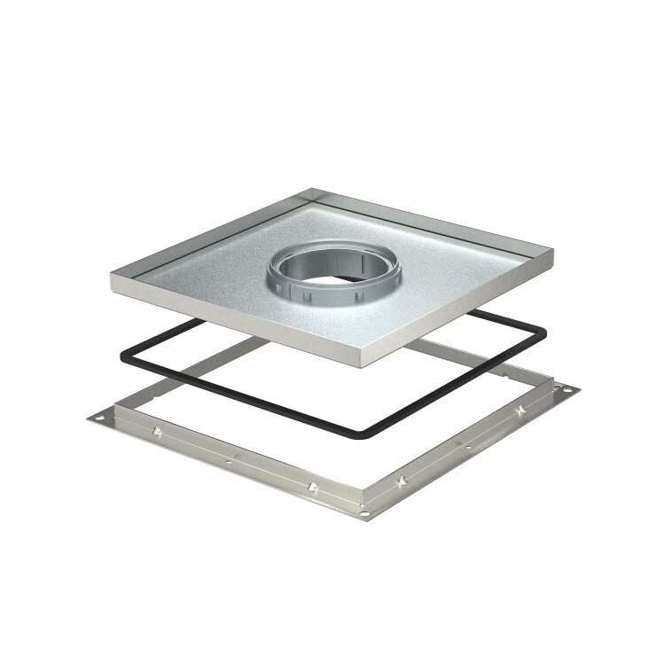 Кассетная рамка для трубы, для UZD250-3, для монтажа электроустановочных изделий в полах с сухим или влажным типом уборки во внутренних помещениях.