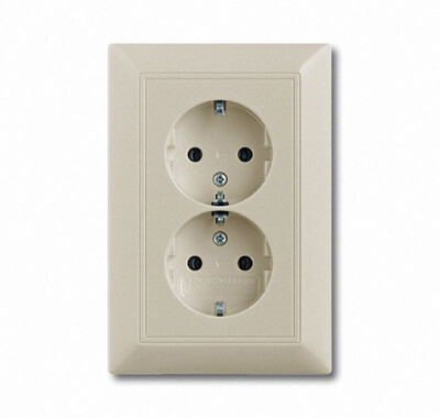 Механизм двойной розетки SCHUKO в комплекте c накладкой, не требует установки в рамку