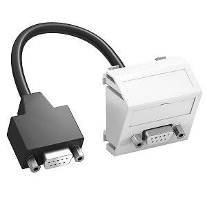 Мультимедийная рамка с разъемом D-Sub9, с наклонным кабельным выводом, с полемдля маркировки, короткий соединительный кабель D-Sub9 (RS232) с разъемом 1:1 (гнездо-гнездо). Суппорт с растровым креплением подходит для горизонтального и вертикального монтажа.