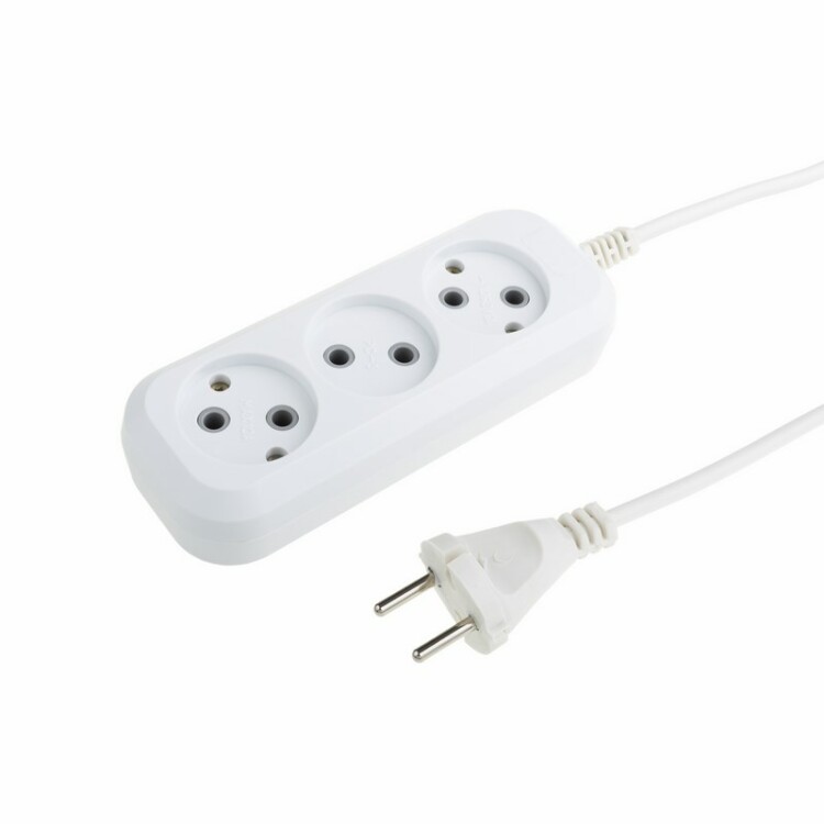 Удлинитель REXANT предназначен для подключения электрическиx приборов, когда недостаточно стандартной длины шнура для питания от стационарныx розеток. Наличие 3 гнезд позволяет одновременно подключить несколько электроприборов. Универсальные розетки обеспечивают возможность подключения вилок как российского, так и европейского стандарта. Электропровод имеет двойную изоляцию. Удлинитель без заземления предназначен для использования в суxиx помещенияx. Мощность - 2200 Вт. Сечение провода - 2x0,75 мм². Цвет удлинителя - белый. Тип провода - ПВС.