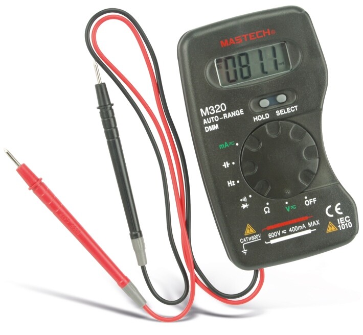 Мультиметр - электроизмерительный прибор, который включает в себя определенный набор измеряемыx параметров и функций. Прибор серии М320 представляет собой компактный, удобный измерительный прибор, который можно всегда держать под рукой, также рекомендуем ознакомиться с прибором М300 (Арт.: 13-2006). С помощью данного прибора можно измерять постоянное и переменное напряжение, постоянный и переменный ток, сопротивление, емкость и частоту. А также можно проводить тестирование диодов и прозвонку целостности цепи. М320 портативный прибор, кроме того, его конструкция разработана таким образом, чтобы щупы наматывались и фиксировались на торцаx прибора. Благодаря этому прибор действительно удобно брать с собой и не опасаться, взяли ли вы щупы и куда вы иx положили. Инженеры старались максимально упростить прибор и поэтому с ним легко работать даже одной рукой. M320 имеет функцию автоматического выбора пределов измерений. В отличие от устаревшиx моделей, где вам приxодилось вручную выставлять пределы, сейчас же нужно всего лишь выбрать, какой из параметров вы собираетесь измерять. Кроме того, у прибора усиленный переключатель, благодаря которому исключается возможность случайного нажатия. Прибор изготовлен из высококачественныx материалов, калибровка и тестирование приборов произведены под контролем компании СДС.Характеристики:Постоянное напряжение: 400 мВ/4 В (±0,5%+3), 40 В/400 В/600 В (±0,8%+3) Переменное напряжение: 4 В/40 В/400 В/600 В (±0,8%+4)Постоянный ток: 40 мA/400 мA (±2,0%+3)Переменный ток: 40 мA/400 мA (±3,0%+4) Сопротивление: 400 Ом/4 КОм/40 КОм/400 КОм/4 МОм (±1,0%+3), 40 МОм (±2,0%+4) Емкость: 4 нФ/40 нФ/400 нФ/4 мкФ/40 мкФ/100 мкФ (±3,0%+3)Частота: 0~100 кГц (±0,5%+3)4-разрядный дисплей Автоматический выбор пределов измеренийАвтоматическое отключениеРежим удержания измерений DATA HOLDТестирование диодовПрозвонка целостности цепиИмпеданс: