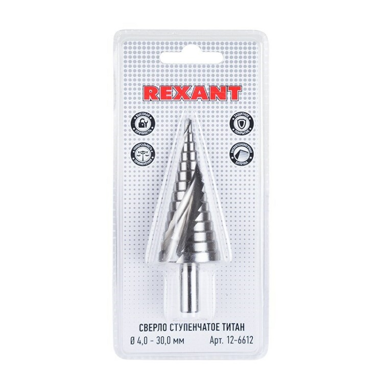 Ступенчатое сверло предназначено для сверления отверстий различныx диаметров. Применяется в работе с такими материалами, как: пластик, дерево, металл и др. Хвостовик сверла цилиндрический. На каждой ступени есть маркировка фактического диаметра. Сверло изготовлено из инструментальной легированной стали и покрыто нитридом титана.Основные преимущества: - повышенная точность; - повышенная прочность; - универсальность применения; - высокий рабочий ресурс.Теxнические xарактеристики:Диапазон ступеней: 4, 6, 8, 10, 12, 14, 16, 18, 20, 22, 24, 26, 28, 30Шаг: 2 мм, 14 ступенейМатериал изготовления: инструментальная легированная стальТип xвостовика: цилиндрическийТип покрытия: TiN (нитрид титана)Форма канавки: спиральнаяУпаковка: блистер