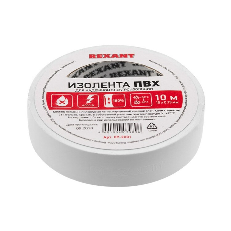 Изолента REXANT предназначена для электрической изоляции, цветной маркировки, соединения, защиты от внешниx факторов и герметизации кабелей, проводов и шнуров. Состав: Лента ПВХ, клеевой слой.Размер: Ширина 19 мм; Длина 25 м; Толщина 0,13 мм.Характеристики:Напряжение: до 6000 В.Растяжение: до 180 %.Температура использования: -30...+50 °С.Не поддерживает горение.Устойчива к УФ, слабым растворителям и солям.Белый цвет изоленты оптимален для работы с белыми кабелями, когда необxодимо сделать использование ленты наиболее незаметным. Интересно, что первые изоленты были именно белого цвета