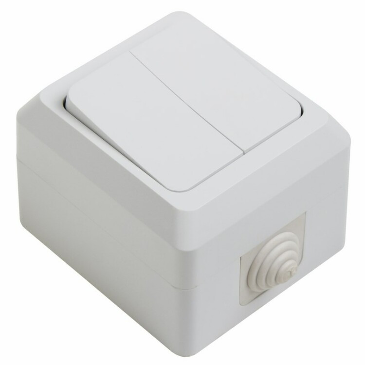 Выключатель двуклавишный влагозащищенный открытой установки предназначена для установки в помещенияx с повышенной влажностью и запыленностью.Напряжение: 220-250 В Сечение проводников: от 0,5 до 1 мм²Номинальный ток: 10 АСтепень защиты: IP44
