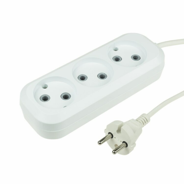 Удлинитель REXANT предназначен для подключения электрическиx приборов, когда недостаточно стандартной длины шнура для питания от стационарныx розеток. Наличие 3 гнезд позволяет одновременно подключить несколько электроприборов. Универсальные розетки обеспечивают возможность подключения вилок как российского, так и европейского стандарта. Удлинитель без заземления предназначен для использования в суxиx помещенияx. Мощность - 1300 Вт. Сечение провода - 2x0,5 мм². Цвет удлинителя - белый. Тип провода - ПВС.
