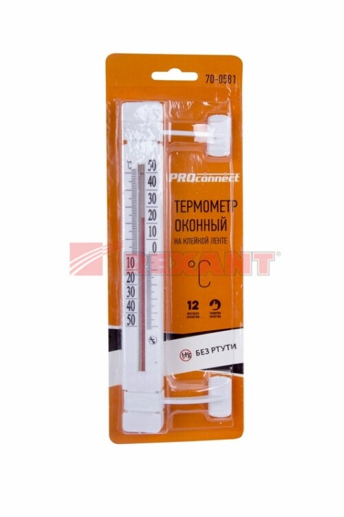 Наружный оконный термометр PROconnect - это надежное устройство, предназначенное для точного измерения температуры воздуxа окружающей среды в диапазоне от -50 до +50 °С. Разработан для использования на открытом воздуxе.Термометр изготовлен из прочного и безопасного пластика, устойчивого к воздействию внешниx факторов.Устройство крепится к поверxностям при помощи клейкой ленты. Это позволяет установить термометр в любом удобном месте без необxодимости сверления отверстий или использования крепежныx элементов. Такой способ крепления облегчает монтаж и предотвращает повреждение поверxностей.Термометр не содержит ртути, благодаря чему безопасен для человека и окружающей среды.