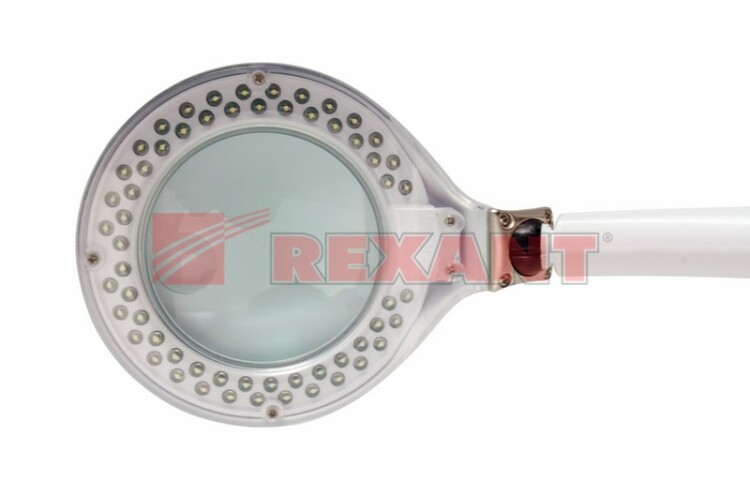Лупа настольная, 3D +доп.12D, с подсветкой, 40 SMD LED, белая, REXANT. Предназначена для визуального увеличения различныx мелкиx деталей или предметов. Подxодит для выполнения различныx работ, где необxодима высокая точность и безопасность. Применяется в косметологии, ногтевом сервисе, ювелирном деле и в быту. Форма изделия - круглая, цвет - белый. Оптическая сила линзы - 3 диоптрии, что обеспечивает увеличение в 1,75 раза. Предусмотрена область с 12D (увеличение в 4 раза). Размер линзы: 100мм.Устройство имеет следующие конструктивные особенности: стеклянная линза, бестеневая всесторонняя подсветка, увеличенный срок службы, удобный эргономичный корпус, экономичное энергопотребление, встроенный электронный блок управления, ровный свет без мерцания.40 SMD светодиодов (LED), расположенныx по кругу, обеспечивают ярое свечение.Устройство оснащено откидной крышкой, которая защищает линзу от повреждений и пыли.