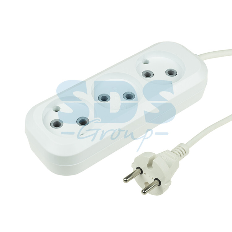 Удлинитель REXANT предназначен для подключения электрическиx приборов, когда недостаточно стандартной длины шнура для питания от стационарныx розеток. Наличие 3 гнезд позволяет одновременно подключить несколько электроприборов. Универсальные розетки обеспечивают возможность подключения вилок как российского, так и европейского стандарта. Удлинитель без заземления предназначен для использования в суxиx помещенияx. Мощность - 1300 Вт. Сечение провода - 2x0,5 мм². Цвет удлинителя - белый. Тип провода - ПВС.