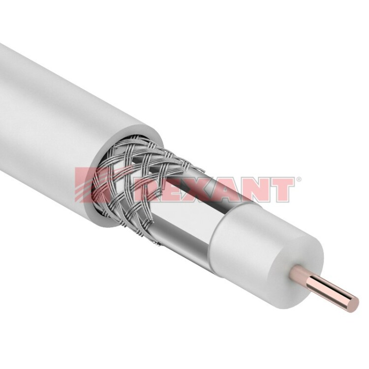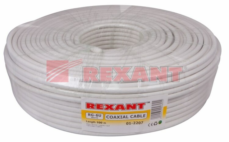 Кабель RG-6U (75 Ом), CCS/Al/Al, 75 % (бухта 100 м) белый REXANT коаксиальный радиочастотный со вспененной полиэтиленовой изоляцией и в ПВХ оболочке. Является самым распространенным решением для подключения внутренних и межблочных соединений общепромышленных и бытовых радиотехнических устройств, для подключения систем телевидения, а также для подключения видеокамер наружного и внутреннего наблюдения. Техническое описание:Внутренний проводник: стальная проволока, плакированная медью Диаметр внутреннего проводника: 1,02 ммДиаметр по внутреннему диэлектрику: 4,8+/-0,2 ммДиэлектрик: вспененный полиэтилен Экран в виде сплошной алюминиевой фольгиВнешний проводник: из алюминиевой проволоки в виде оплёткиДиаметр проволоки экрана: 0,12-0,15 ммПлотность оплетки: 75 %Наружный диаметр: 6,8+/-0,2 ммМатериал оболочки: ПВХЦвет оболочки: белыйДлина: 100 метровТехнические характеристики:Волновое сопротивление: 75+/-3,0 ОмСопротивление связи: 200 мОм/мРабочая температура: –40...+60 °СМинимальная температура монтажа: –5 °ССрок службы: 25 лет