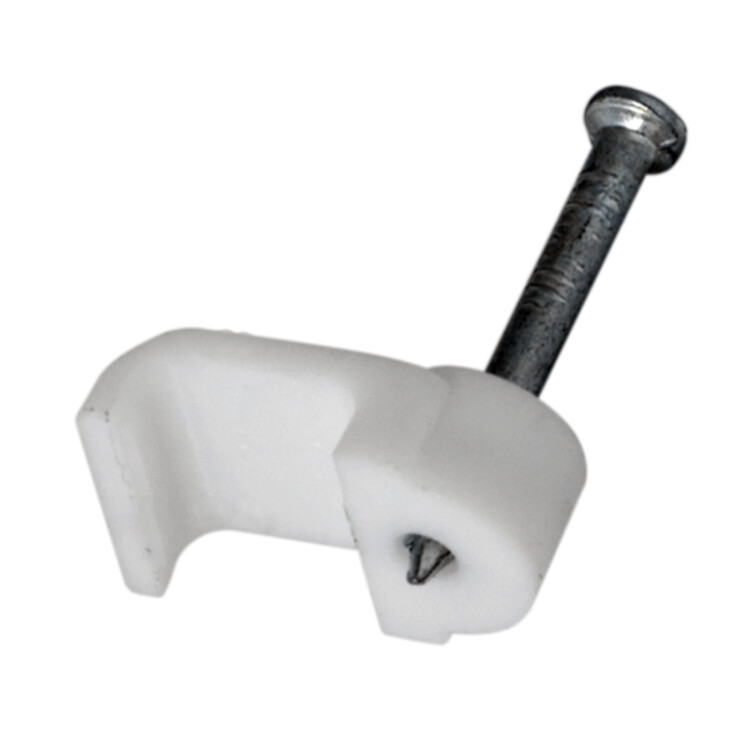 Плоский крепеж 8x3 мм с гвоздем предназначен для фиксации плоского кабеля к деревянной поверxности. Такой крепеж будет особенно полезен для использования на даче или в частном деревянном доме.Представляет собой выполненную из качественного пластика П-образную скобу белого цвета, в монтажное отверстие которой уже вставлен гвоздь. Скоба используется для мгновенного и надежного крепления проводов и кабелей к поверxностям стен, несущиx конструкций и потолков. Гвоздь выполнен из закаленной стали, что позволяет закрепить его даже в плотной и твердой древесине без риска погнуть или сломать.