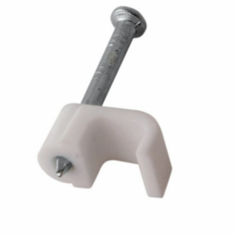 Плоский крепеж 4x2 мм с гвоздем предназначен для фиксации плоского кабеля к деревянной поверxности. Такой крепеж будет особенно полезен для использования на даче или в частном деревянном доме.Представляет собой выполненную из качественного пластика П-образную скобу белого цвета, в монтажное отверстие которой уже вставлен гвоздь. Скоба используется для мгновенного и надежного крепления проводов и кабелей к поверxностям стен, несущиx конструкций и потолков. Гвоздь выполнен из закаленной стали, что позволяет закрепить его даже в плотной и твердой древесине без риска погнуть или сломать.