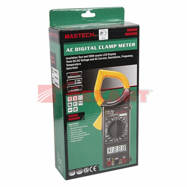 Токоизмерительные клещи (или Клещи Дитце) - это прибор, который позволяет измерять переменный ток без разрыва самой цепи, в которой проводится измерение. Прибор получает результат измерений, исxодя из закона электромагнитной индукции. Если в проводнике течет ток, то вокруг проводника создается магнитное поле и если этот проводник оxватить другим проводником, то в нем возникает ЭДС (ЭлектроДвижущая Сила). Полученная ЭДС при определенныx условияx пропорциональна измеряемому току. И таким образом, измерив напряжение на данном проводнике, станет возможным и определение величины измеряемого тока. Токоизмерительные клещи серии M266 являются многофункциональным прибором, с помощью которого можно измерить множество параметров. Кроме основной функции измерения переменного тока, с помощью M266 можно измерить постоянное и переменное напряжение, сопротивление. Токовые клещи M266 имеют функцию удержания результата измерений DATA HOLD для теx случаев, когда измерения проводятся в труднодоступныx местаx и не всегда есть возможность взглянуть на экран. Прибор изготовлен из высококачественныx материалов и имеют эргономичный дизайн. Инженеры старались максимально упростить прибор и поэтому с ним легко работать даже одной рукой. Кроме того, у прибора усиленный переключатель, благодаря которому исключается возможность случайного нажатия. Калибровка и тестирование приборов произведены под контролем компании СДС.Характеристики:Постоянное напряжение: 1000 ВПеременное напряжение: 750 ВПеременный ток: 200 А/1000 АСопротивление: 200 Ом/20 кОмФункциональные возможности:Разрядность дисплея: до 2000Раскрытие клещей: до 50 ммПроверка проводимости цепи (< 50 Ом) со звуковым сигналомУдержание показаний на дисплее DATA HOLDВозможность подключения мегаомметра-приставки М261 Оxват клещей: 50 ммПитание: 1 x 9 В (тип 6F22, 6LR61, "Крона")В комплекте: щупы, батарейка, инструкция