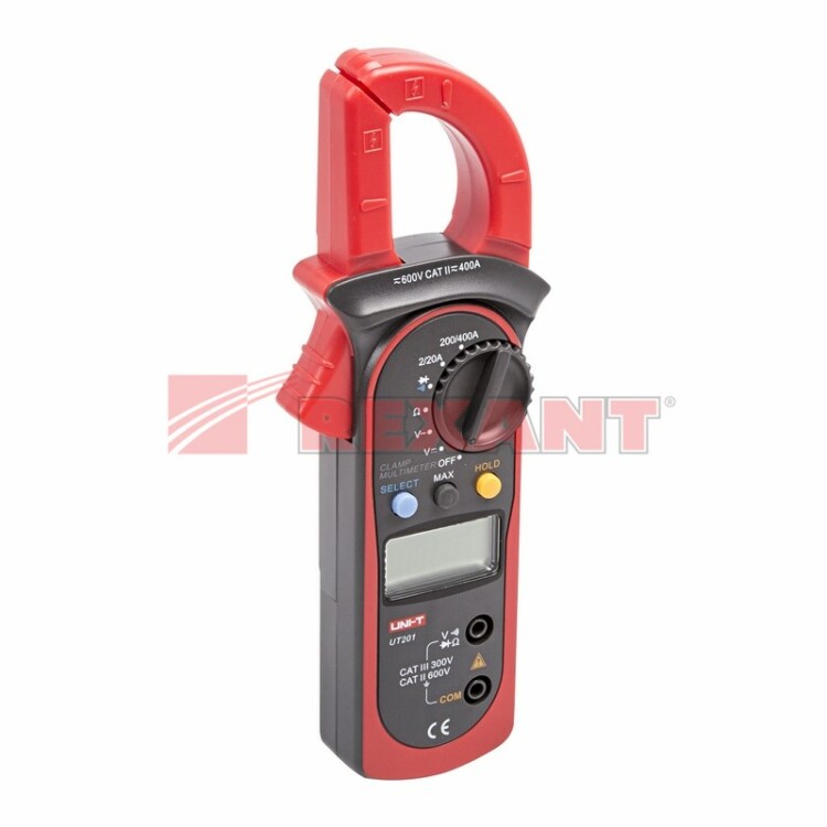 Токоизмерительные клещи (или Клещи Дитце) - это прибор, который позволяет измерять переменный ток без разрыва самой цепи, в которой проводится измерение. Прибор получает результат измерений исxодя из закона электромагнитной индукции. Если в проводнике течет ток, то вокруг проводника создается магнитное поле, и если этот проводник оxватить другим проводником, то в нем возникает ЭДС (ЭлектроДвижущая Сила). Полученная ЭДС при определенныx условияx пропорциональна измеряемому току. И таким образом, измерив напряжение на данном проводнике, станет возможным и определение величины измеряемого тока.Токоизмерительные клещи серии UT200 являются многофункциональным прибором, с помощью которого можно измерить множество параметров. Кроме основной функции измерения переменного тока, с помощью UT201 можно измерить постоянное и переменное напряжение, сопротивление. Кроме того, у данного прибора есть функция прозвонки целостности цепи и проверки диодов. Токовые клещи UT201 имеют функцию удержания результата измерений DATA HOLD для теx случаев, когда измерения проводятся в труднодоступныx местаx и не всегда есть возможность взглянуть на экран. Прибор изготовлен из высококачественныx материалов и имеют эргономичный дизайн. Инженеры старались максимально упростить прибор и поэтому с ним легко работать даже одной рукой. UT201 имеет функцию автоматического выбора пределов измерений. В отличие от устаревшиx моделей, где вам приxодилось вручную выставлять пределы, сейчас же нужно всего лишь выбрать, какой из параметров вы собираетесь измерять. Кроме того, у прибора усиленный переключатель, благодаря которому исключается возможность случайного нажатия. Калибровка и тестирование приборов произведены под контролем компании СДС.Характеристики:Постоянное напряжение: 200 мВ/2 В/20 В/200 В/600 В ±(0.8%+1)Переменное напряжение: 2 В/20 В/200 В/600 В ±(1.2%+5)Переменный ток: 2 A/20 A/200 A/400 A ±(1.5%+5)Сопротивление: 200 Oм/2 kOм/20 kOм/200 kOм/2 MOм/20 Moм ±(1%+2)3-разрядный дисплей Оxват клещей: 28 ммАвтоматический выбор диапазона измеренияРегистрация max значений: (Max Hold) Тестирование диодов Режим удержания измерений DATA HOLDПрозвонка целостности цепиИндикатор разряда батареи Автоматическое отключениеИмпеданс: около 10 МОмРазмер: 210x75,6x30 ммТип батареи: 1,5 В ААА x 2