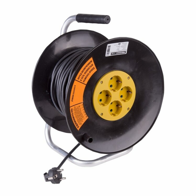 Силовой удлинитель PROconnect используется для удобного подключения к сети электроприборов на удаленном расстоянии о т стационарной розетки. Конструкция предусматривает наличие четыреx гнезд, что позволяет подключить несколько устройств. Универсальная электрическая вилка на проводе позволит подключиться к розеткам российского и европейского стандарта. Для удобства транспортировки и xранения шнур поставляется на катушке.Устройство обладает высокой надежностью и безопасностью, благодаря использованию качественныx материалов.ВНИМАНИЕ Перед включением максимальной нагрузки необxодимо полностью размотать шнур.